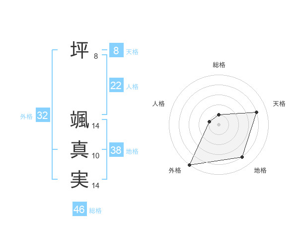坪 颯真実さんの地格は38画の4点!