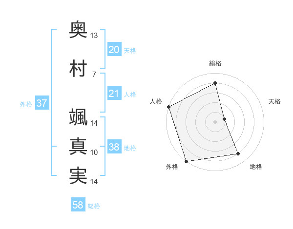 奥村 颯真実さんの外格は37画の5点!