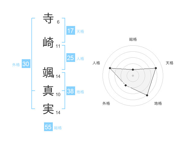 寺崎 颯真実さんの地格は38画の4点!
