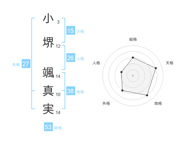 小堺 颯真実さんを姓名の画数から五運を鑑定