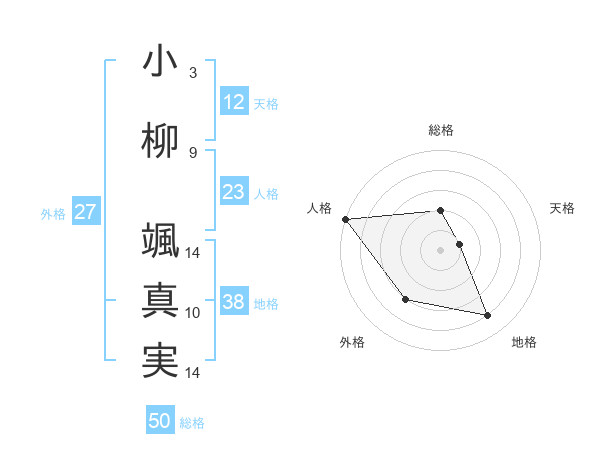 小柳 颯真実さんの総格は50画の2点!