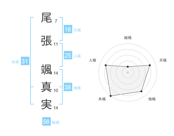 尾張 颯真実さんを姓名の画数から五運を鑑定