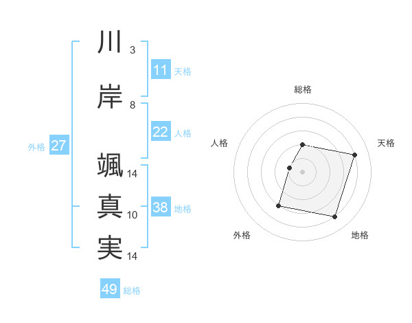 川岸 颯真実さんを姓名の画数から五運を鑑定