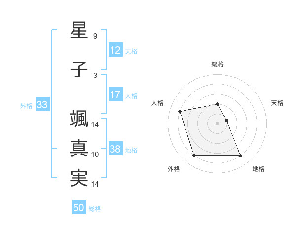 星子 颯真実さんを姓名の画数から五運を鑑定