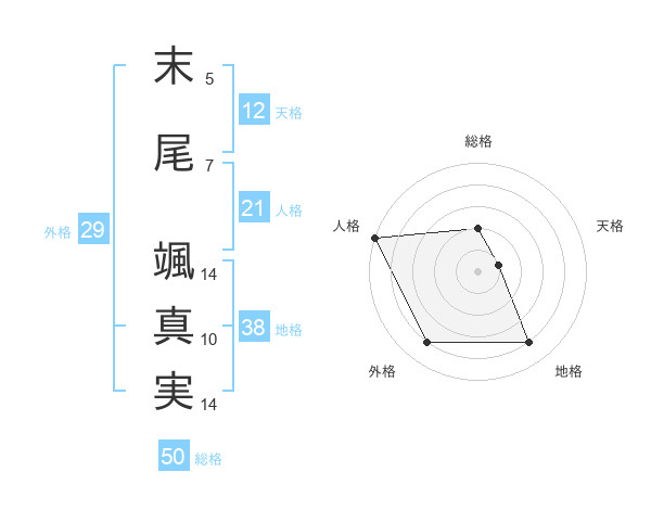 末尾 颯真実さんの外格は29画の4点!
