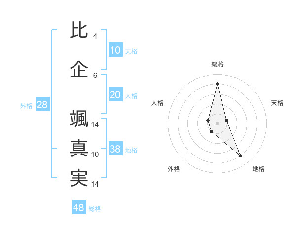 比企 颯真実さんを姓名の画数から五運を鑑定