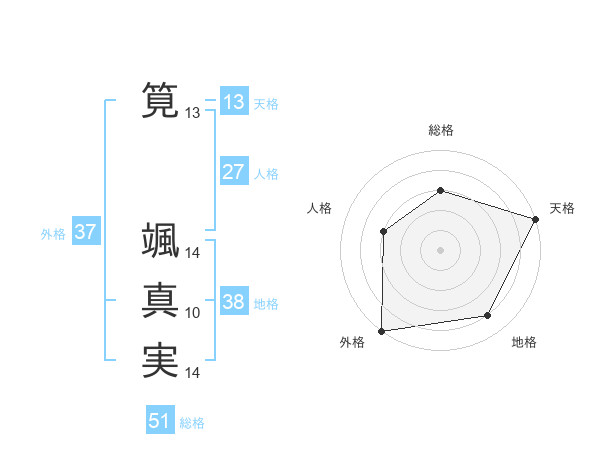 筧 颯真実さんを姓名の画数から五運を鑑定