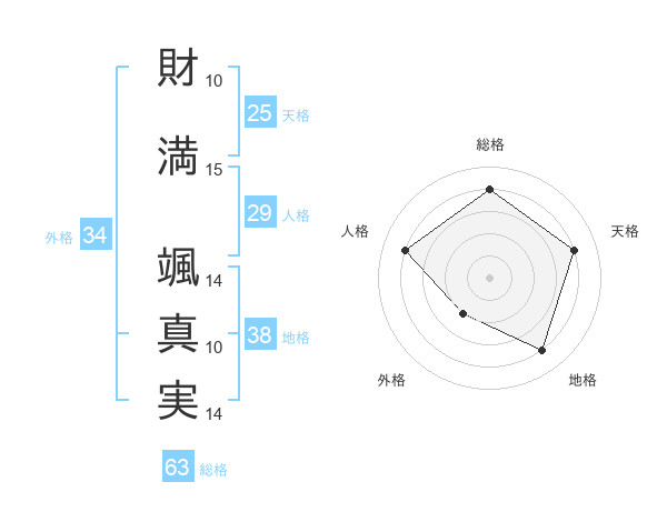 財満 颯真実さんを姓名の画数から五運を鑑定
