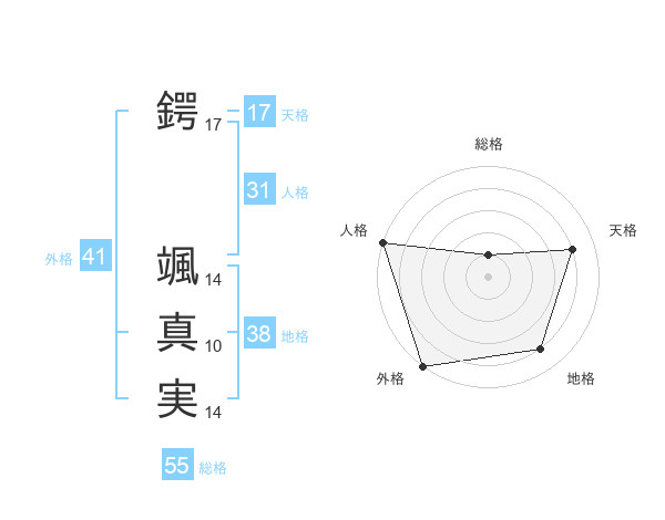 鍔 颯真実さんの外格は41画の5点!
