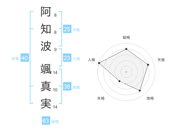 阿知波 颯真実さんの総格は63画の4点!