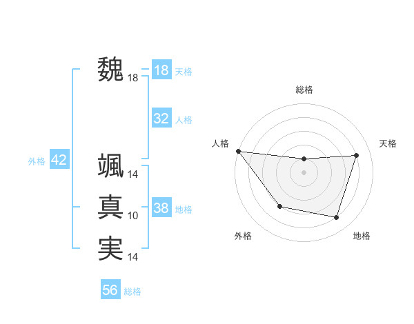 魏 颯真実さんの総格は56画の1点!