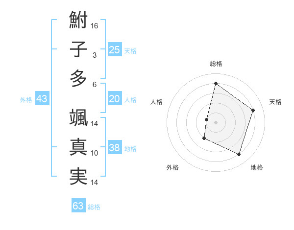鮒子多 颯真実さんの外格は43画の2点!