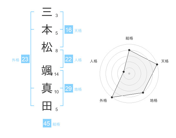 三本松 颯真田さんを姓名の画数から五運を鑑定
