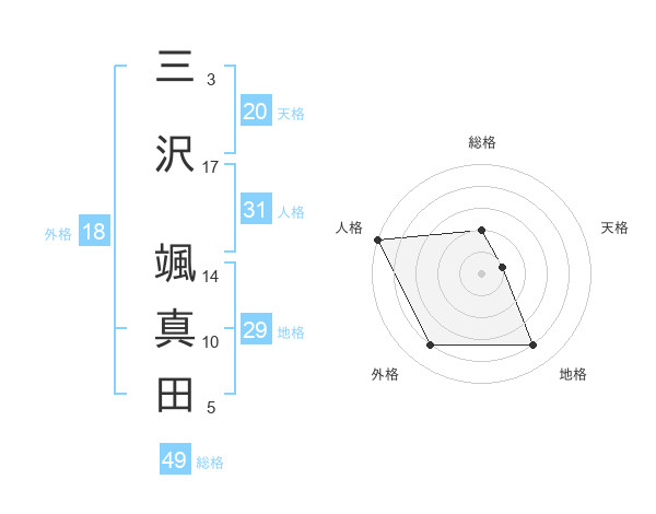 三沢 颯真田さんの総格は49画の2点!