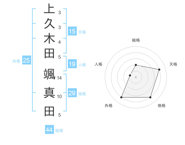 上久木田 颯真田さんの総格は44画の2点!