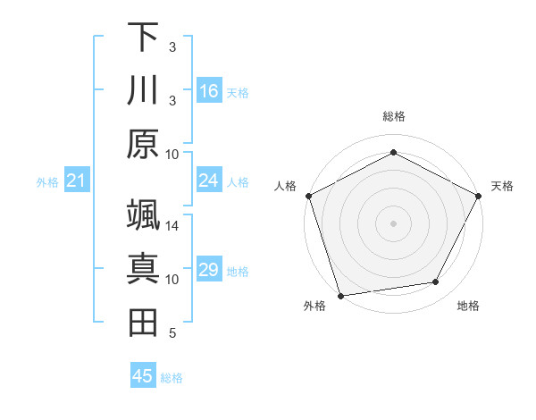 下川原 颯真田さんを姓名の画数から五運を鑑定