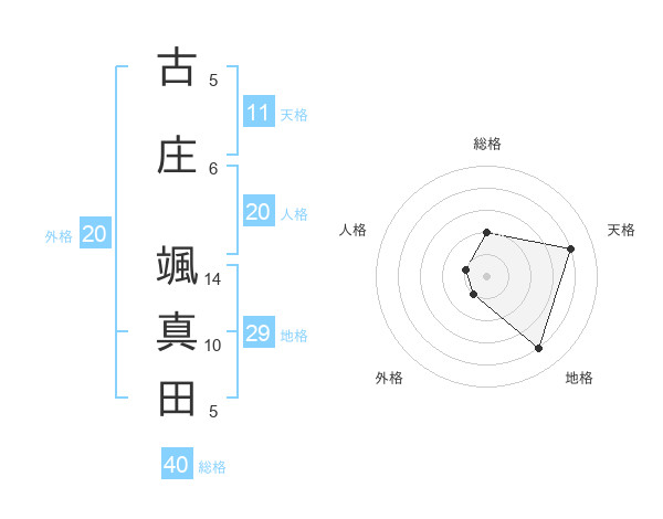 古庄 颯真田さんの地格は29画の4点!