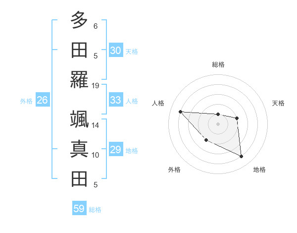 多田羅 颯真田さんを姓名の画数から五運を鑑定