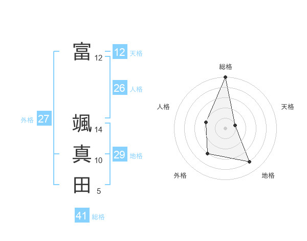 富 颯真田さんの総格は41画の5点!