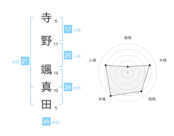 寺野 颯真田さんの外格は21画の5点!