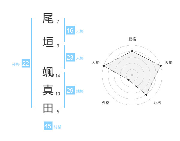 尾垣 颯真田さんの総格は45画の4点!