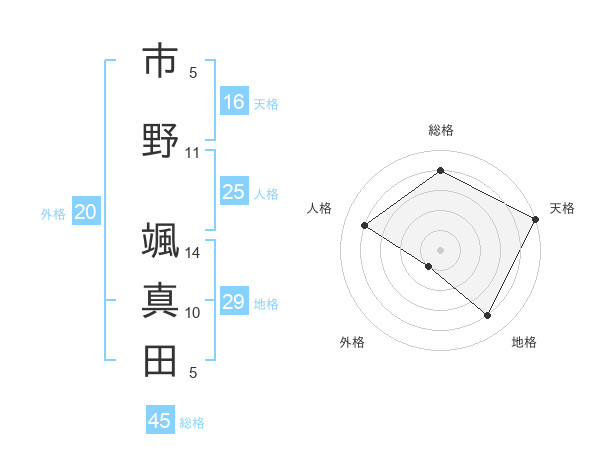 市野 颯真田さんを姓名の画数から五運を鑑定