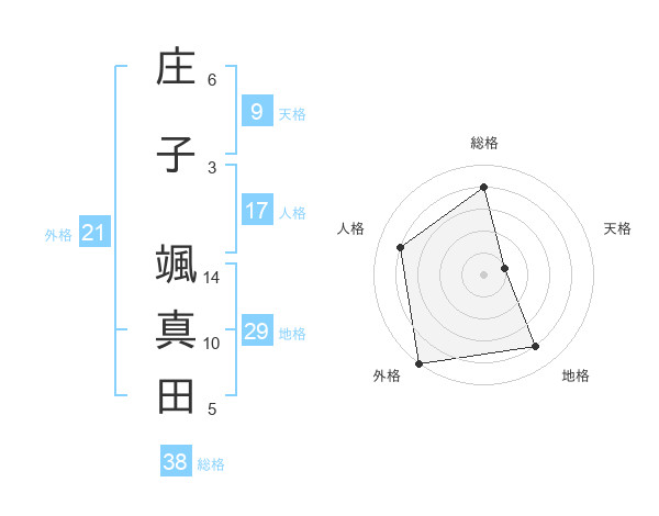 庄子 颯真田さんの外格は21画の5点!