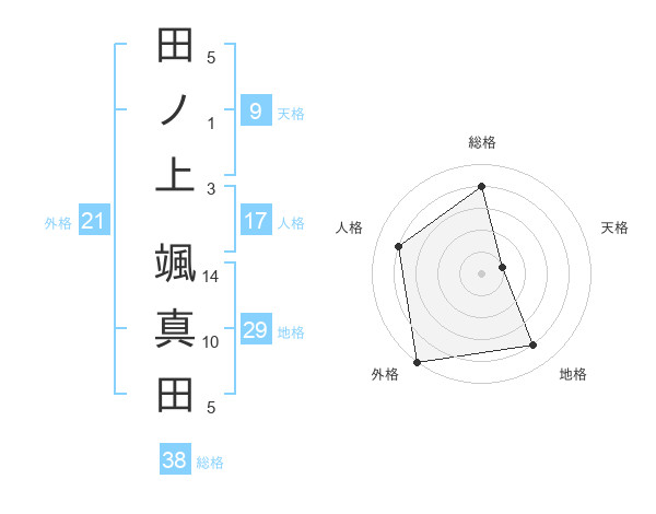 田ノ上 颯真田さんを姓名の画数から五運を鑑定