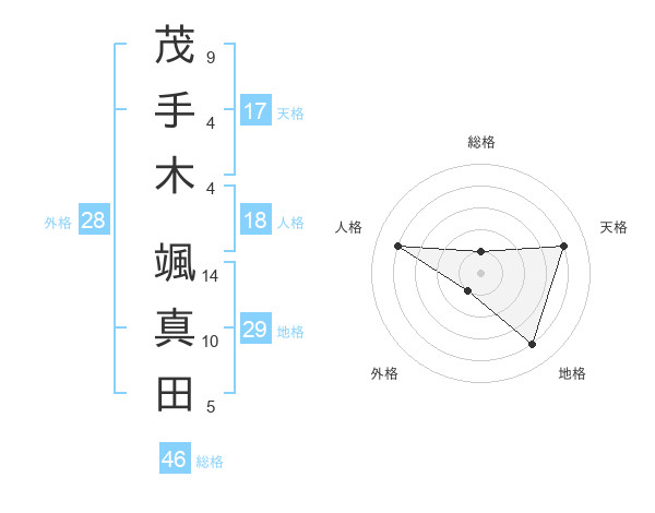 茂手木 颯真田さんを姓名の画数から五運を鑑定