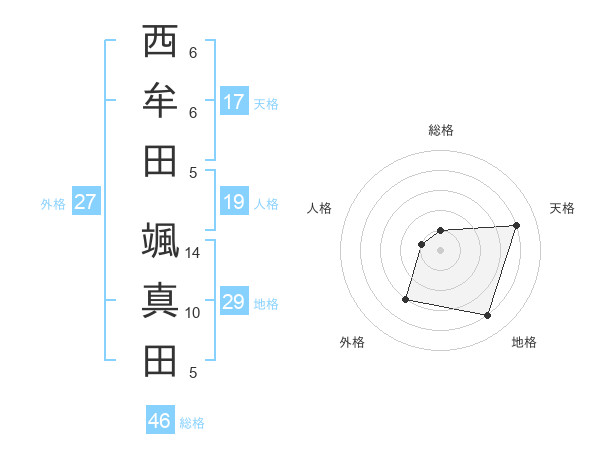 西牟田 颯真田さんの天格は17画の4点!