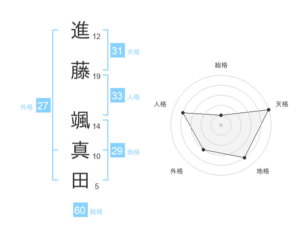 進藤 颯真田さんを姓名の画数から五運を鑑定