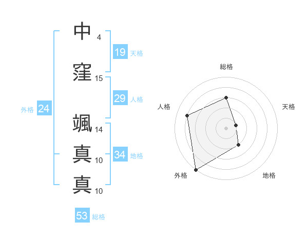 中窪 颯真真さんの総格は53画の3点!