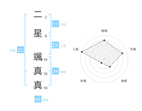 二星 颯真真さんを姓名の画数から五運を鑑定