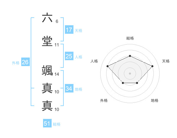 六堂 颯真真さんの総格は51画の3点!