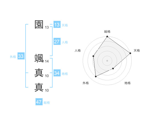 園 颯真真さんの総格は47画の5点!