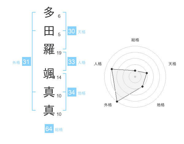 多田羅 颯真真さんの総格は64画の1点!