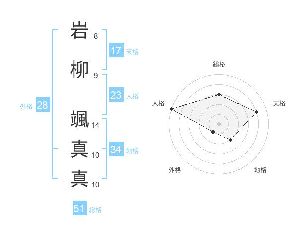 岩柳 颯真真さんを姓名の画数から五運を鑑定