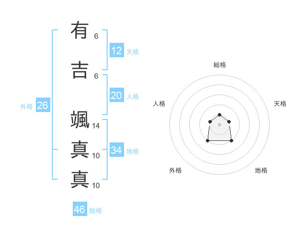 有吉 颯真真さんの総格は46画の1点!