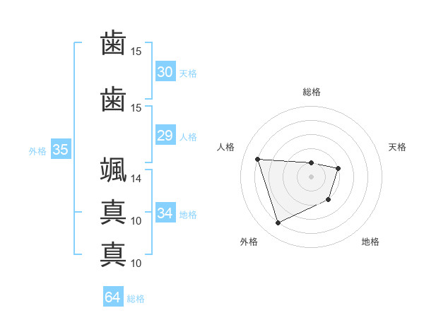 歯歯 颯真真さんを姓名の画数から五運を鑑定