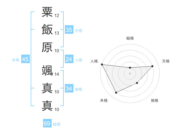粟飯原 颯真真さんを姓名の画数から五運を鑑定