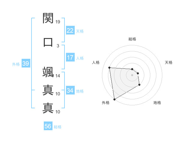 関口 颯真真さんの総格は56画の1点!