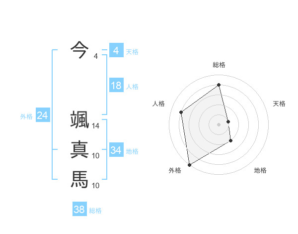 今 颯真馬さんの総格は38画の4点!