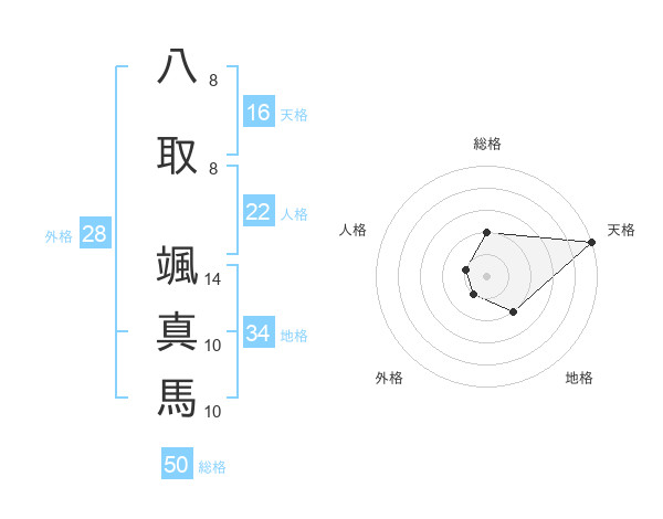 八取 颯真馬さんの総格は50画の2点!
