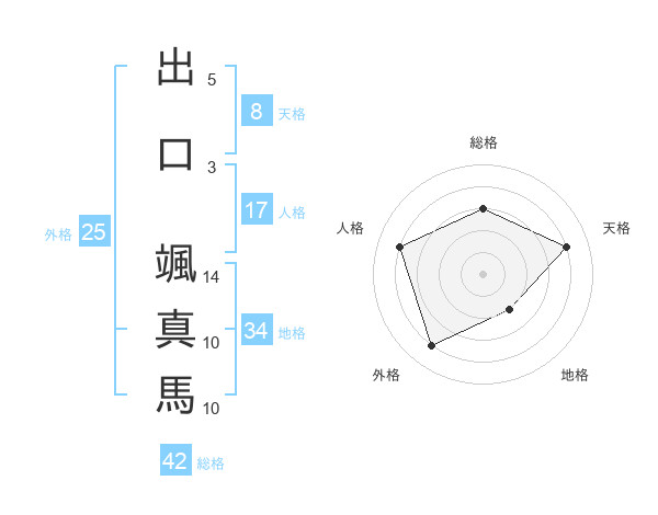 出口 颯真馬さんを姓名の画数から五運を鑑定