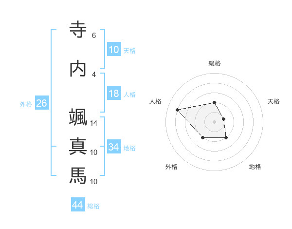 寺内 颯真馬さんの総格は44画の2点!