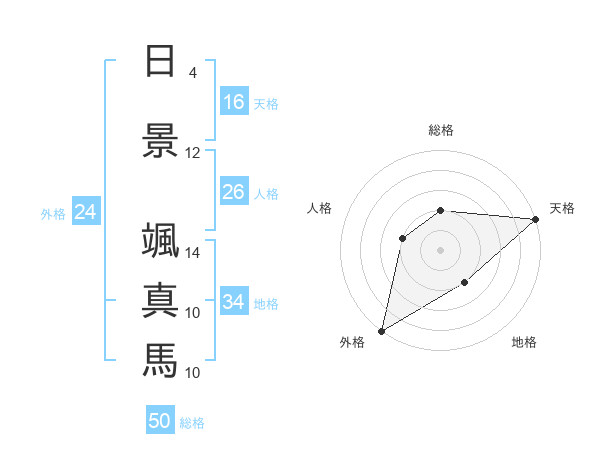 日景 颯真馬さんを姓名の画数から五運を鑑定