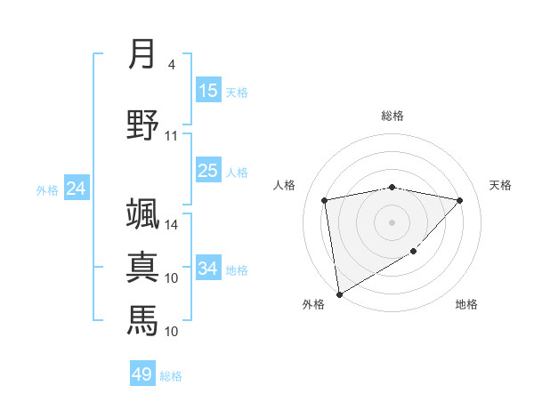 月野 颯真馬さんを姓名の画数から五運を鑑定