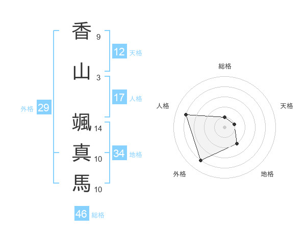 香山 颯真馬さんを姓名の画数から五運を鑑定