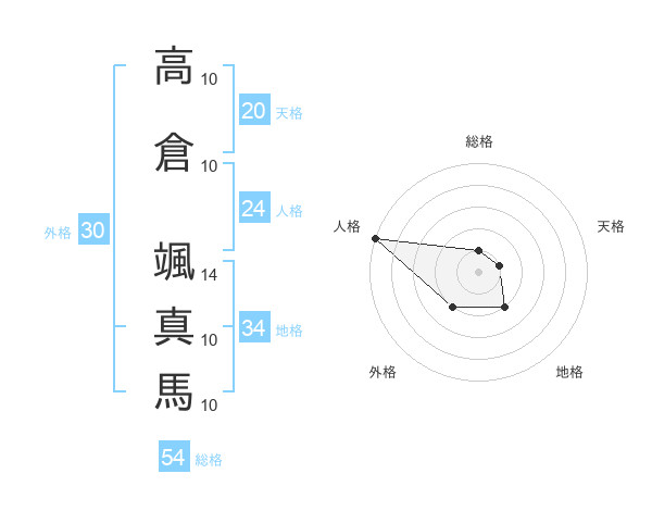 高倉 颯真馬さんの総格は54画の1点!