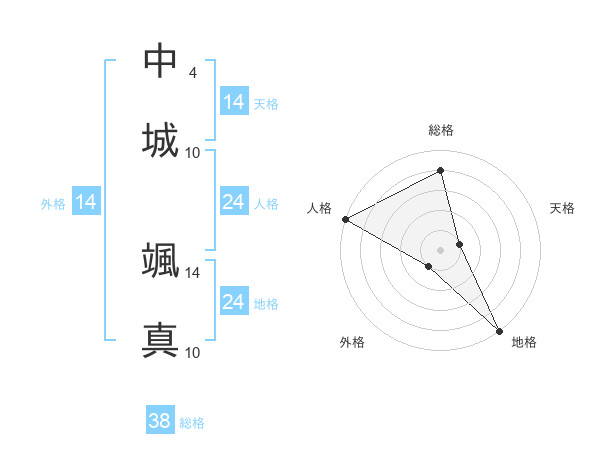 中城 颯真さんの総格は38画の4点!